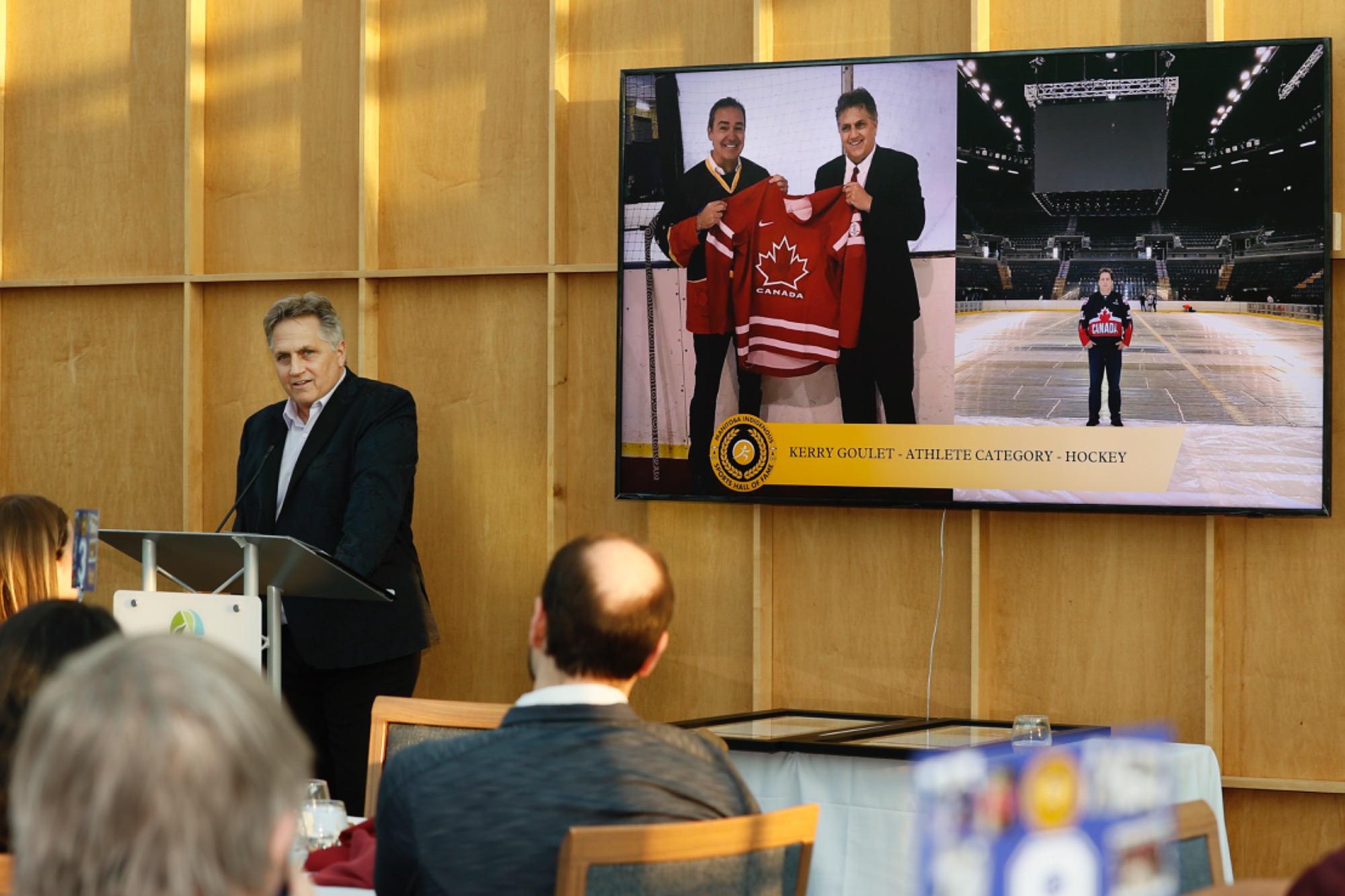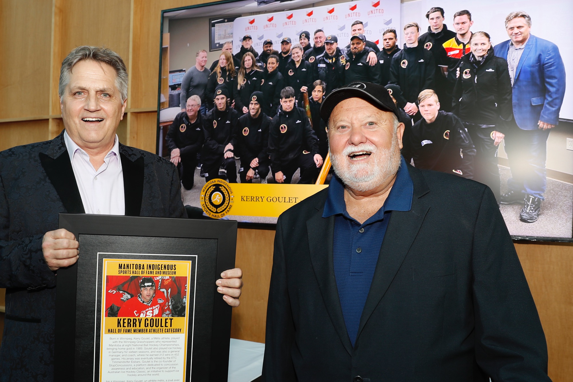 Inductee Kerry Goulet and MC Scott Taylor catching up!