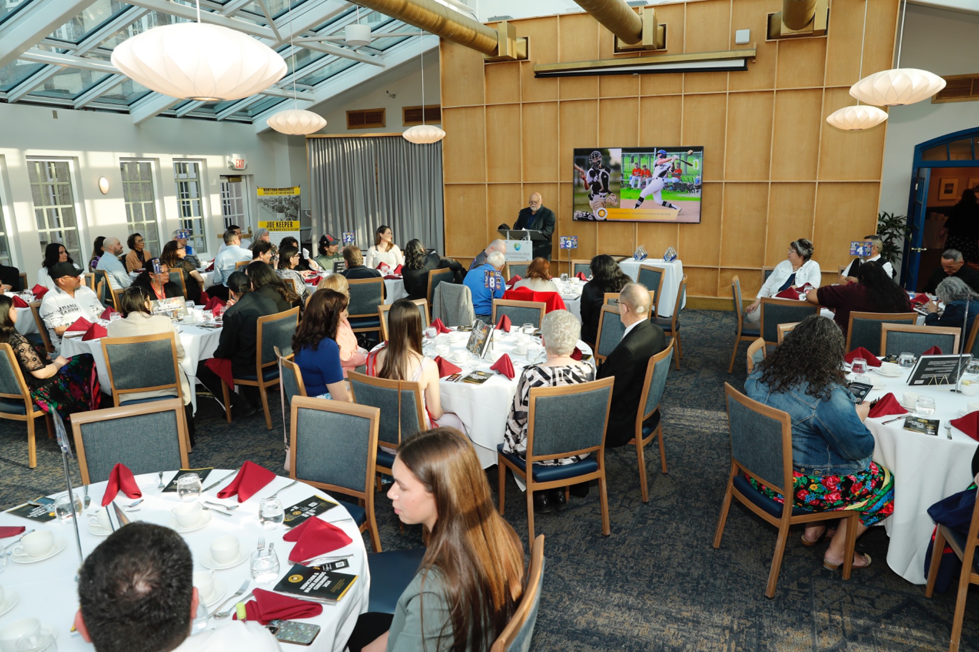 Class of 2024 Inductee Kerrie Buchberger accepting her Induction Plaque presented by MASRC Board Co-Chair Jaymie Leary Balfour.