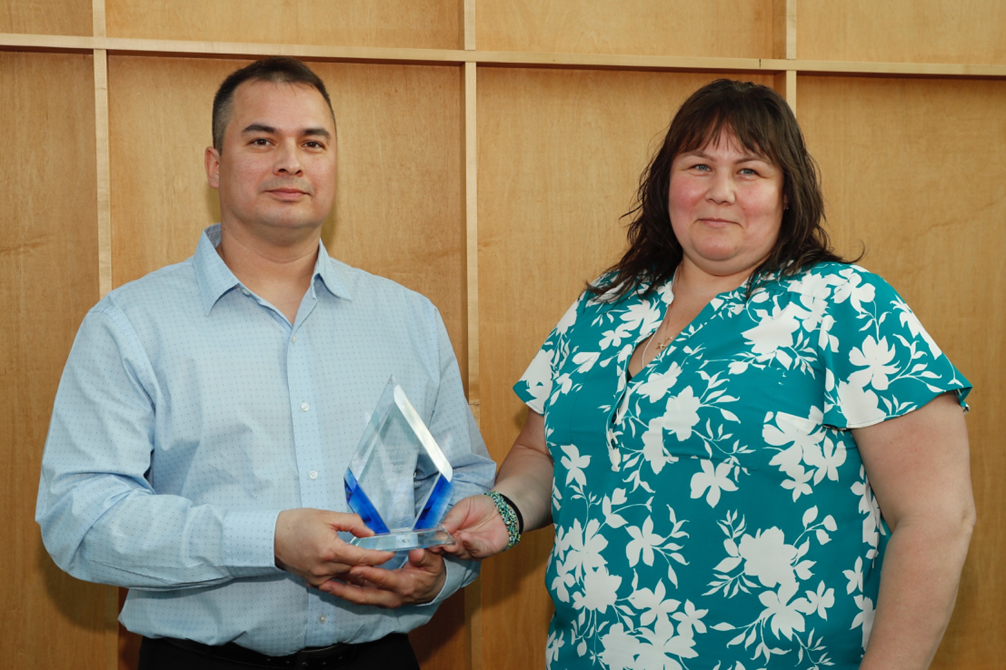 Dean Govereau, MASRC Coach of the Year, accepting his award presented by MASRC Board Co-Chair Jaymie Leary Balfour.