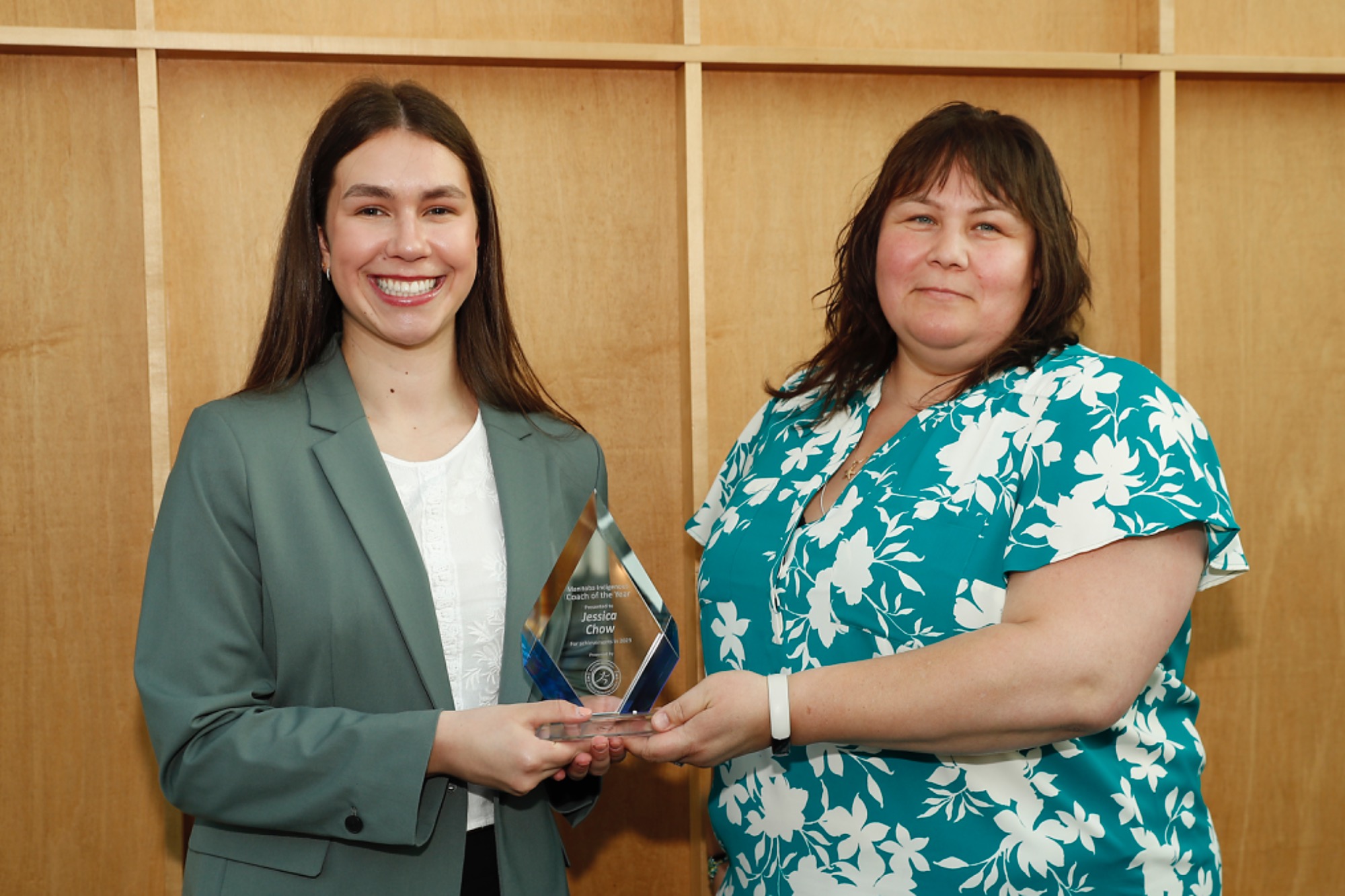 Jessica Chow, MASRC Coach of the Year, accepting her award presented by MASRC Board Co-Chair Jaymie Leary Balfour.